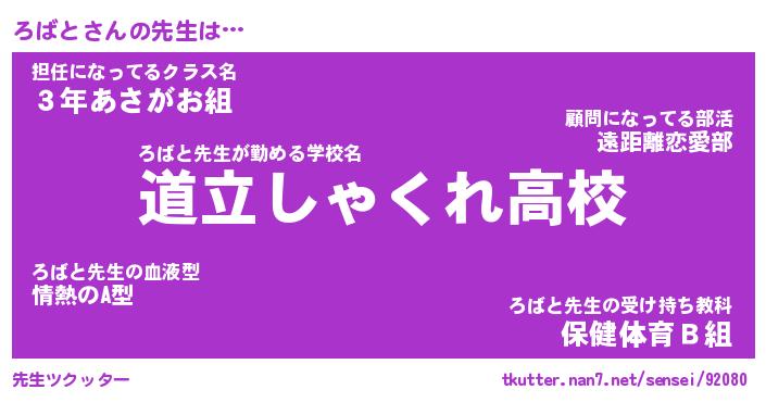 | ファンタジー風あだ名 | 『ロバフェル』『エターナルロバトー』 |