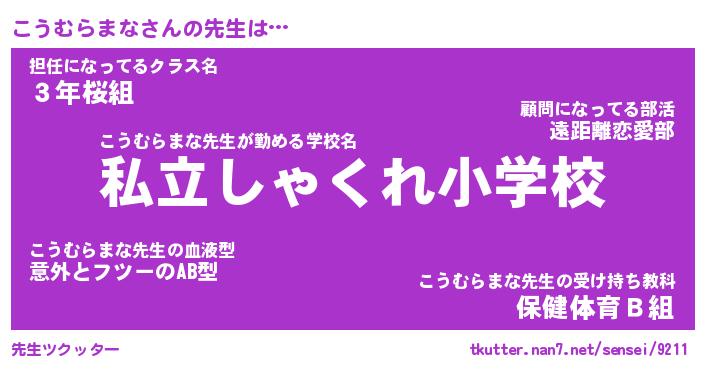 | 伝説のあだ名 | 『伝説のスナイパーこうむらまな』 |