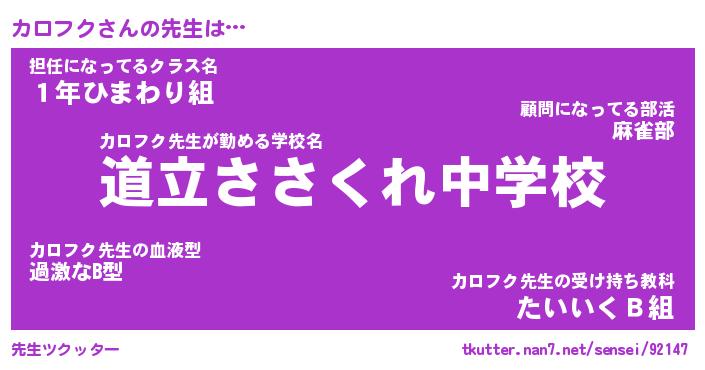 | ファンタジー風あだ名 | 『カロフェル』『エターナルカロフクー』 |
