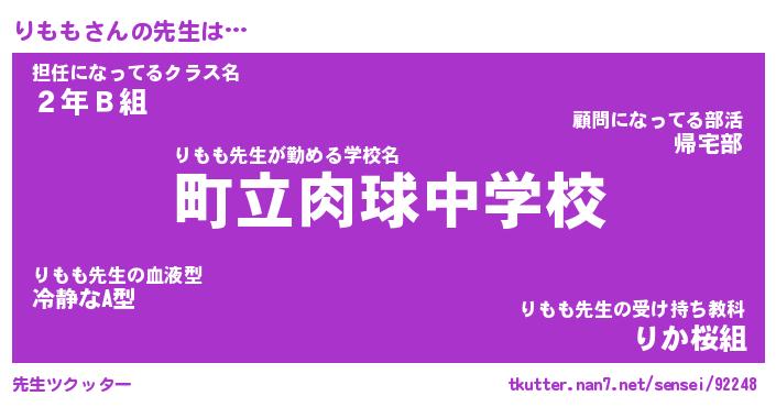 | ヘコむあだ名 | 『りもふぇ~』『豆乳』『りもを』 |
