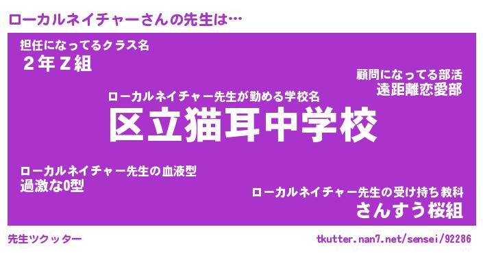 | ヒーロー風カッコイイあだ名 | 『スーパーローカルネイチャー』 |