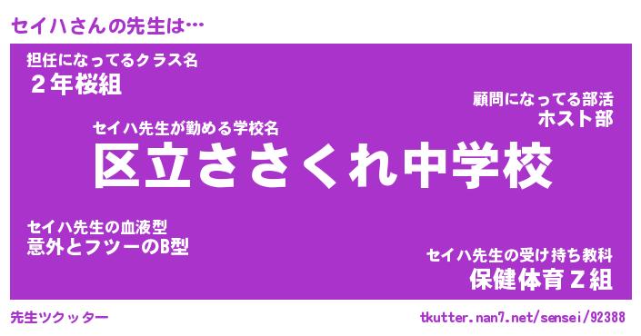 | ポケモン風あだ名 | 『セイチュウ』『セイハダネ』 |
