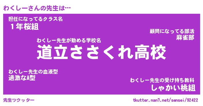 | 意味不明あだ名 | 『ペロリンわくしー』『永久保存わくしー』 |