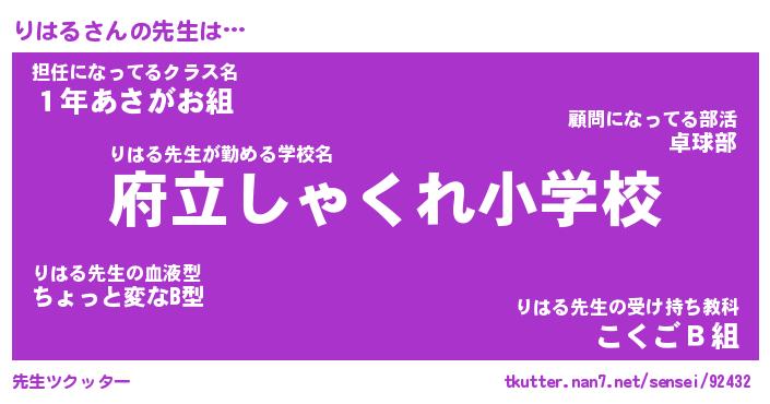 | ポケモン風あだ名 | 『リハチュウ』『リハルダネ』 |