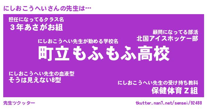 | 恥ずかしいあだ名 | 『プリティーにしおこうへい』『にしちん』 |