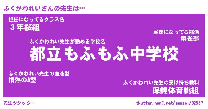 | ヘコむあだ名 | 『ふくにゅー』『酢こんぶ』『ふくお』 |