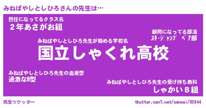 | 肩書あだ名 | 『みねばやしとしひろ御曹司』 |