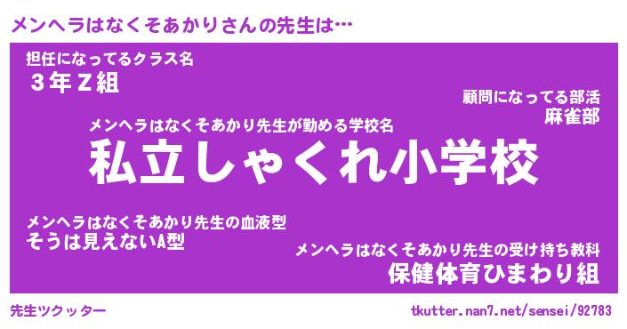 | ポケモン風あだ名 | 『メンチュウ』『メンヘダネ』 |