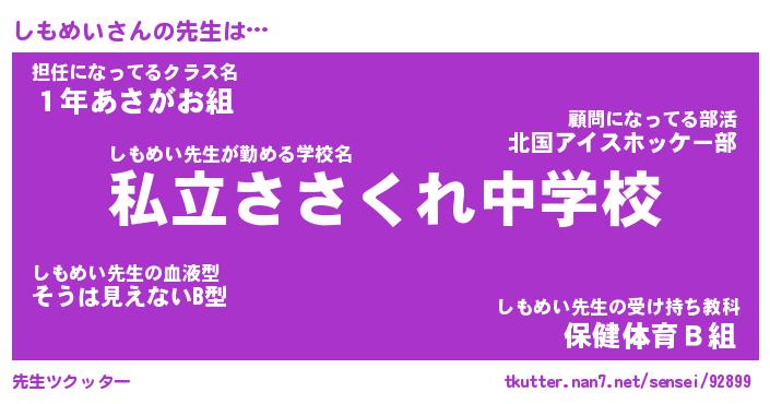| 意味不明あだ名 | 『ペロリンしもめい』『永久保存しもめい』 |