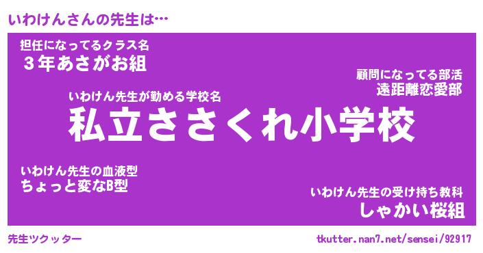 | 意味不明あだ名 | 『ペロリンいわけん』『永久保存いわけん』 |