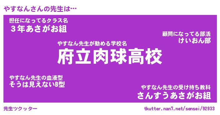 | 意味不明あだ名 | 『ペロリンやすなん』『永久保存やすなん』 |
