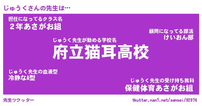 | 欧米人風あだ名 | 『マイケルじゅうく』『ウサインじゅうく』 |