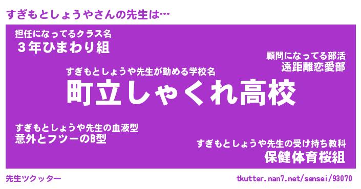 | 伝説のあだ名 | 『封印されしスナイパーすぎもとしょうや』 |