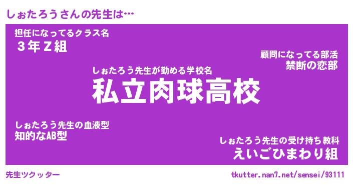 | ヒーロー風カッコイイあだ名 | 『スーパーシォタロウ』『魔戒騎士シォ』 |