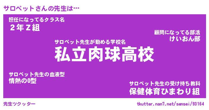 | ファンタジー風あだ名 | 『サロフェル』『エターナルサロペットー』 |