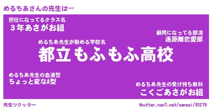 | ヘコむあだ名 | 『めるにゅー』『なまこ酢』 |