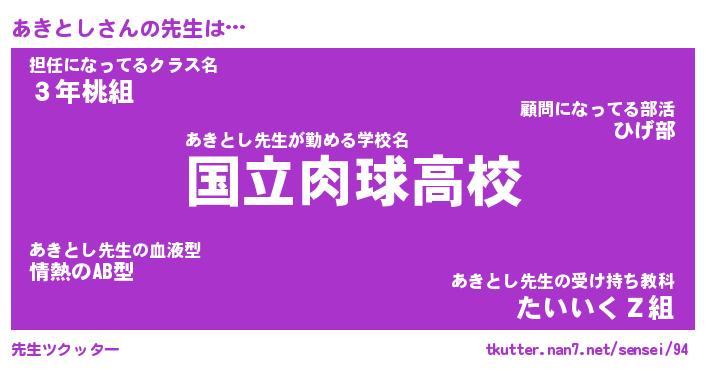| 意味不明あだ名 | 『ペロリンあきとし』『永久保存あきとし』 |