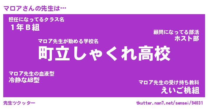 | ヒーロー風カッコイイあだ名 | 『スーパーマロア』『ウルトラマロアマン』 |