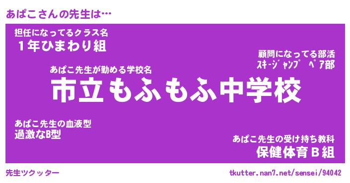 | 意味不明あだ名 | 『ペロリンあぱこ』『あぱこフォーエバー』 |