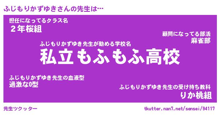 男性向けラノベタイトル風あだ名 | 『ふじもりかずゆきの憂鬱』 |