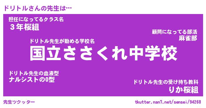 | 意味不明あだ名 | 『ペロリンドリトル』『永久保存ドリトル』 |