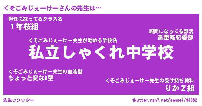 | 伝説のあだ名 | 『伝説のスナイパーくそごみじぇーけー』 |
