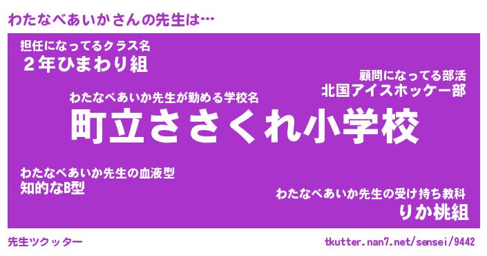 | ポケモン風あだ名 | 『ワタチュウ』『ワタナダネ』 |
