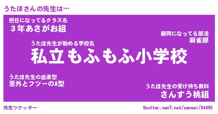 | ポケモン風あだ名 | 『ウタチュウ』『ウタホダネ』 |