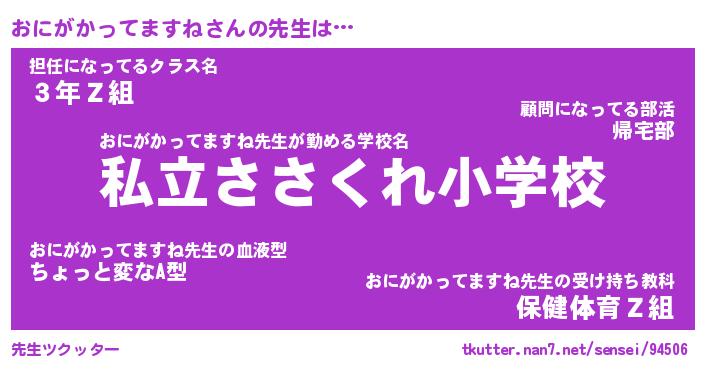 | 男性向けラノベタイトル風あだ名 | 『おにがかってますねの憂鬱』 |