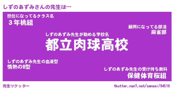 | ポケモン風あだ名 | 『シズチュウ』『シズノダネ』 |
