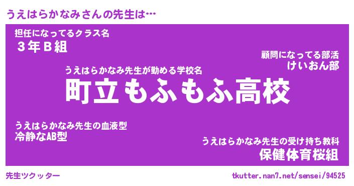 | ポケモン風あだ名 | 『ウエチュウ』『ウエハダネ』 |