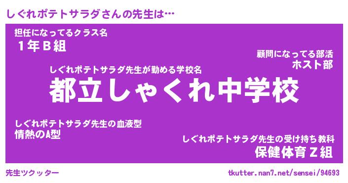 | 伝説のあだ名 | 『不死鳥のスナイパーしぐれポテトサラダ』 |