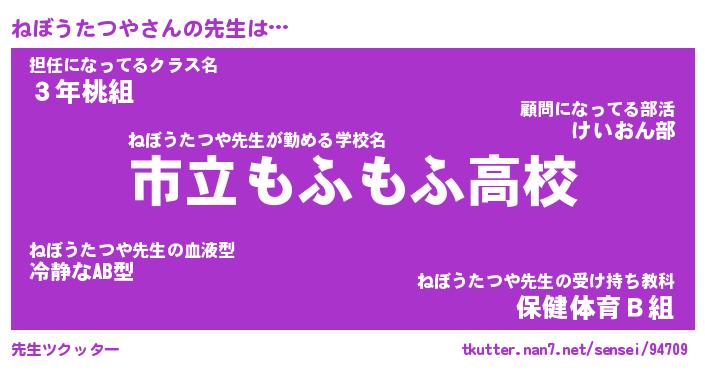 | ヒーロー風カッコイイあだ名 | 『スーパーネボウタツヤ』『炎刃騎士ネボ』 |