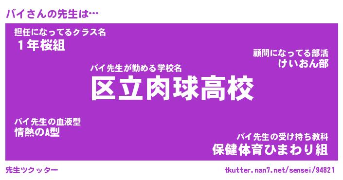 | 意味不明あだ名 | 『ペロリンバイ』『バイフォーエバー』 |