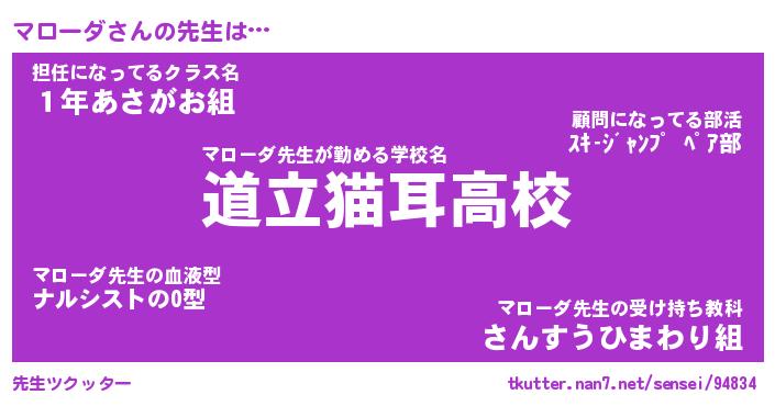 | 意味不明あだ名 | 『ペロリンマローダ』『永久保存マローダ』 |