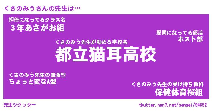 | ヒーロー風カッコイイあだ名 | 『スーパークサノミウ』『天弓騎士クサ』 |