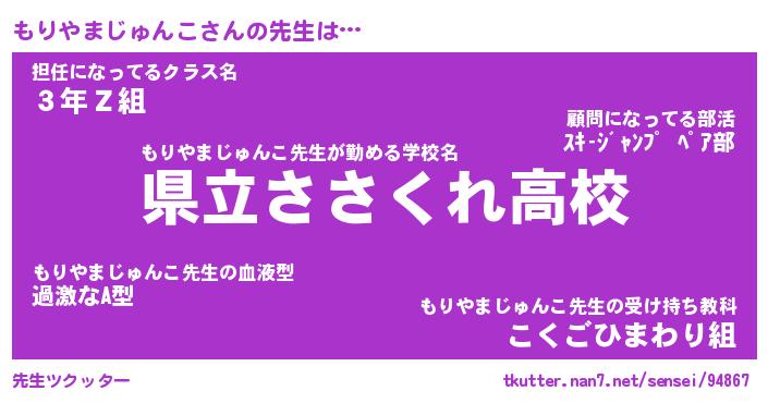 | 伝説のあだ名 | 『不死鳥のスナイパーもりやまじゅんこ』 |