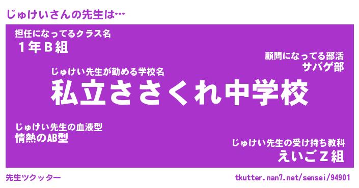 | 意味不明あだ名 | 『ペロリンじゅけい』『永久保存じゅけい』 |