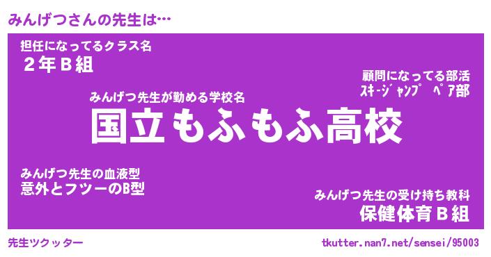 | ファンタジー風あだ名 | 『ミンフェル』『エターナルミンゲツー』 |