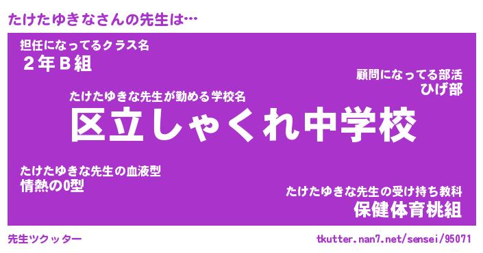 | ヘコむあだ名 | 『たけっふぃ~』『豆乳』『たけ太郎』 |