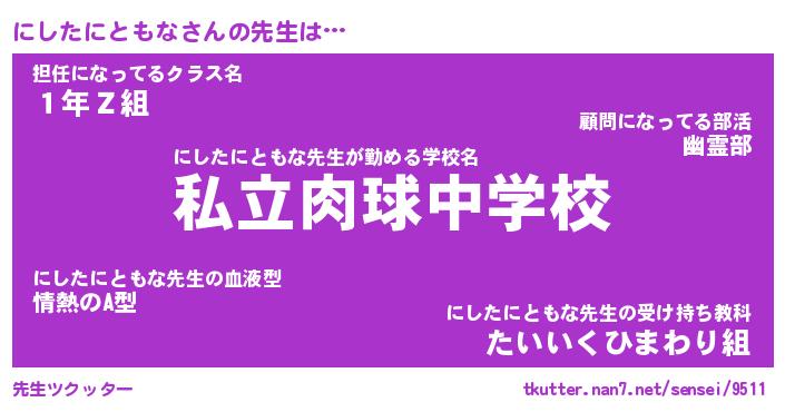 | 胡散臭い通販商品みたいなあだ名 | 『必ず成功するブレスレット…その名も「にしたにともな」』 |
