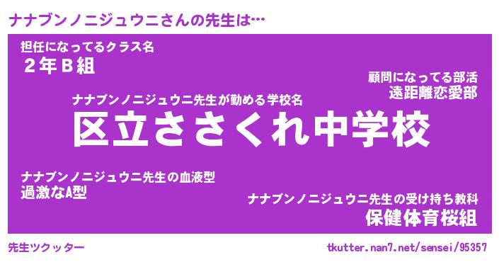 | ツイッター | ナナブンノニジュウニさんのツイッターID『fukuyoka_kun』 |