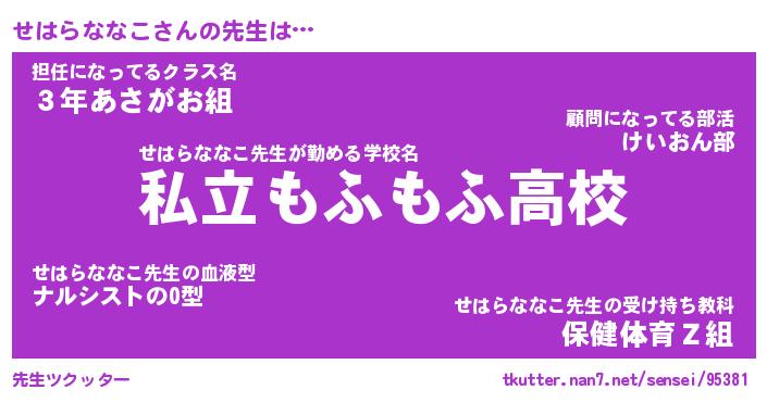 | 恥ずかしいあだ名 | 『プリティーせはらななこ』『せはっちょ』 |