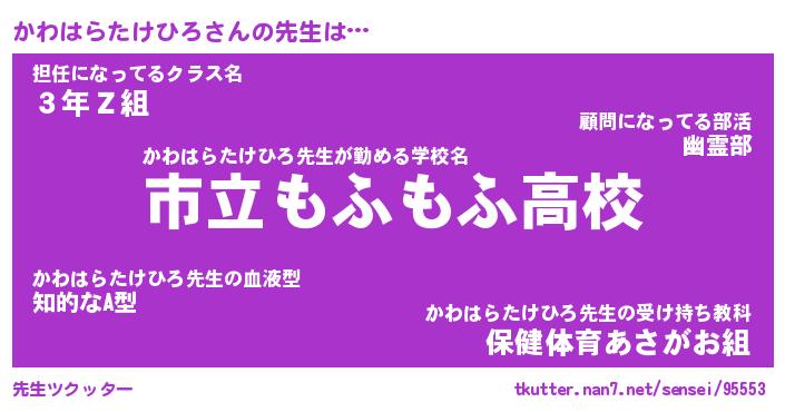 | ヒーロー風カッコイイあだ名 | 『スーパーカワハラタケヒロ』 |