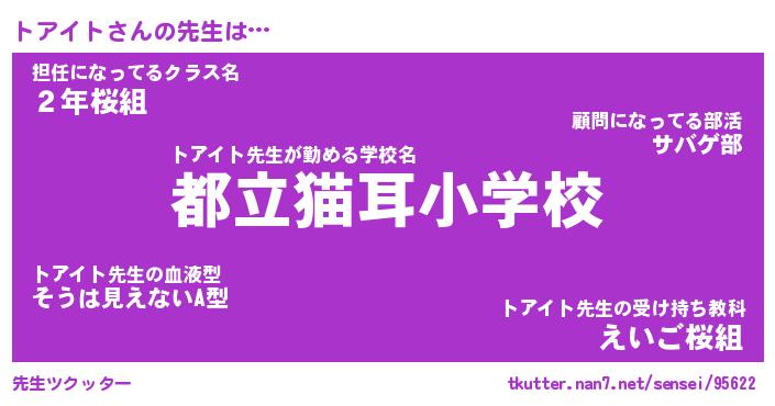 | ヘコむあだ名 | 『トアにー』『なまこ酢』『トアっぺ』 |