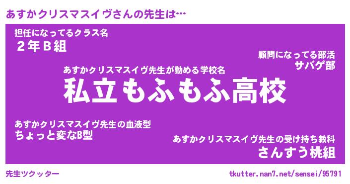 | 女子向けラノベタイトル風あだ名 | 『(仮)あすかクリスマスイヴのやんごとなき事情』 |