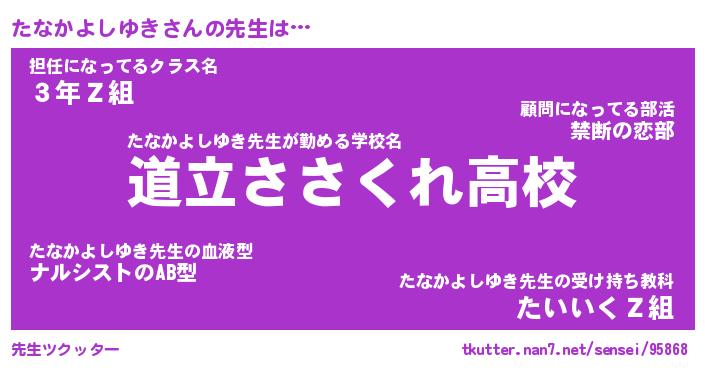 | ポケモン風あだ名 | 『タナチュウ』『タナカダネ』 |