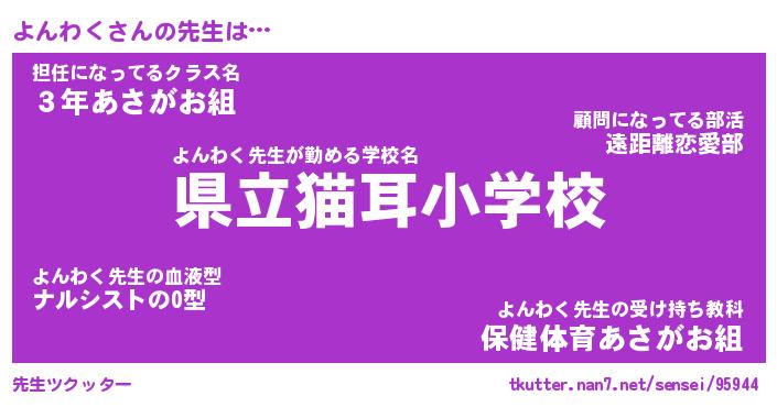 | 意味不明あだ名 | 『ペロリンよんわく』『永久保存よんわく』 |