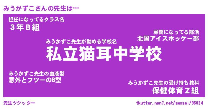 | ファンタジー風あだ名 | 『ミウフェル』『エターナルミウカズコー』 |