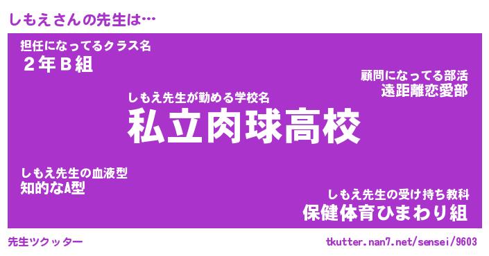 | ヘコむあだ名 | 『しもふぇ~』『なまこ酢』『しもを』 |